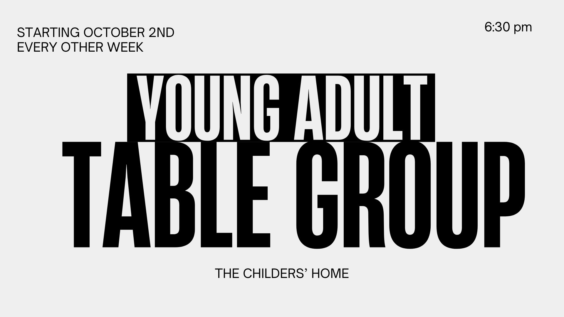 We’re excited to launch a brand-new Table Group just for young adults, starting Wednesday, October 2nd at 6:30 PM at the Childers’ apartment. This group will meet every other week for connection and honest conversations about life and faith. If you’re a young adult, there’s a seat waiting for you, so come join us!